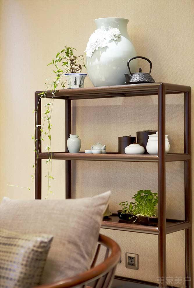 在幾案上擺設(shè)陶瓷、花瓶等器物,也能起到“畫龍點(diǎn)睛”的作用,來(lái)營(yíng)造東方特有的禪意。
