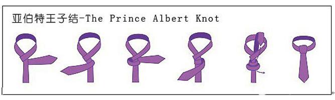 6.亞伯特王子結(jié):適用于質(zhì)地柔軟的細(xì)領(lǐng)帶以及搭配扣領(lǐng)及尖領(lǐng)襯衫,由于要繞三圈,因此領(lǐng)帶切莫選擇較厚的質(zhì)地。正確打法是在寬邊先預(yù)留較長(zhǎng)的空間并在繞第二圈時(shí)盡量貼合在一起即可完成此一完美結(jié)型。