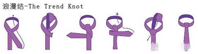 8.浪漫結(jié):適合用于浪漫系列的領(lǐng)口及襯衫。給人坦白、率直,信心十足,具有強(qiáng)烈的自我主張之感。完成后將領(lǐng)結(jié)下方之寬邊壓以縐折可縮小其結(jié)型,可將窄邊往左右移動(dòng)使其小部分露在寬邊旁。