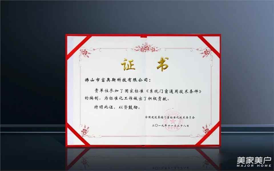 此次獲得國(guó)家標(biāo)準(zhǔn)《系統(tǒng)門窗通用技術(shù)條件》單位,是業(yè)界對(duì)富奧斯多年來(lái)在鋁合金門窗領(lǐng)域所取得成就的充分肯定。