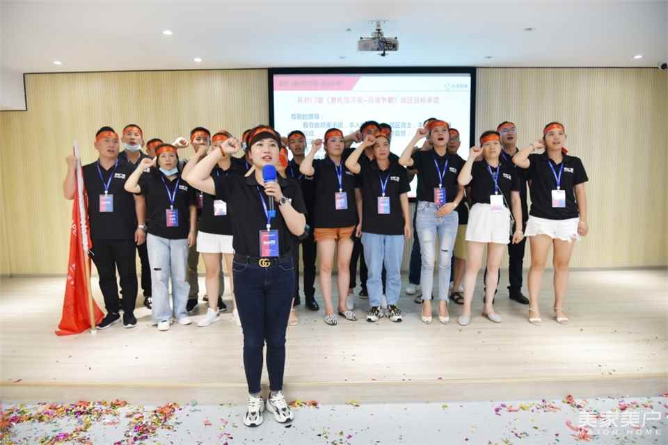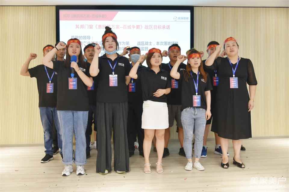 會(huì)上,其邦門窗營銷團(tuán)隊(duì)集體上臺(tái)背誦其邦十大軍規(guī),整齊的步伐,嘹亮的聲音,展示出其邦人昂揚(yáng)的氣勢和高昂的斗志,也讓經(jīng)銷商家人們更加熱血沸騰,對(duì)此次百城爭霸活動(dòng)更有信心。