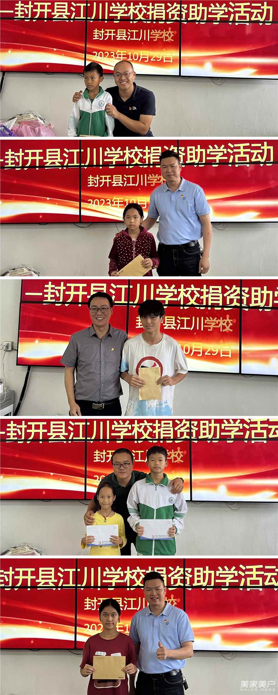 以善心匯聚力量,用善行溫暖人心,1029日,在廣東省門業(yè)協(xié)會會長、派雅門窗董事長李鈞洪,廣東省門業(yè)協(xié)會執(zhí)行會長徐生,廣東省門業(yè)協(xié)會黨支部書記、佛山南獅救援隊隊長馬建華帶領下,廣東省門業(yè)協(xié)會黨支部成員、入黨積極分子、派雅門窗、東亞門業(yè)、卡得羅門窗、金羊門業(yè)、瑞達佰邦、膜先生、粵萊美、盛鋒五金、天辰股份和其高門窗五金家10家會員企業(yè),再次走進肇慶市封開縣江川學校,對該校16名困難學生進行結對助學活動。這是繼831日廣東省門業(yè)協(xié)會黨支部與南獅救援隊黨支部聯(lián)合在江川學校開展助學活動后,更大一次捐資助學活動。本次活動受到江川鎮(zhèn)鎮(zhèn)政府和江川學校的熱烈歡迎和大力支持,江川鎮(zhèn)駐鎮(zhèn)書記邱將軍、黎壬清,江川鎮(zhèn)鎮(zhèn)委員、江川學校校長蘇瑞彬、副校長莫增和,及師生代表和受捐學生家長出席了本次活動。