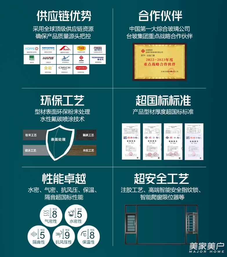 第七,進(jìn)一步發(fā)揮正金門窗的企業(yè)的產(chǎn)業(yè)鏈優(yōu)勢(shì)。正金門窗是臺(tái)玻華南總代,產(chǎn)品均采用 SQ 級(jí)高性能玻璃,此外還擁有自己的玻璃廠和型材擠壓廠,以及三家表面處理工廠,將發(fā)揮大規(guī)模產(chǎn)業(yè)鏈集中生產(chǎn)的優(yōu)勢(shì),為行業(yè)賦能。