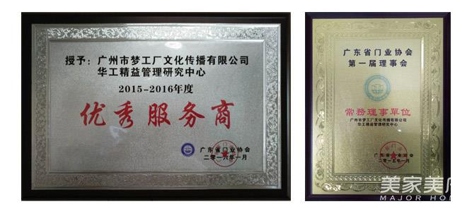 廣東省門業(yè)協(xié)會(huì)授予夢(mèng)工廠“優(yōu)秀服務(wù)商”稱號(hào)& 廣東省門業(yè)協(xié)會(huì)常務(wù)理事單位