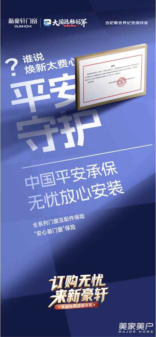 訂購(gòu)無(wú)憂(yōu)險(xiǎn) 門(mén)窗放心選!新豪軒行業(yè)首發(fā)門(mén)窗消費(fèi)險(xiǎn),樹(shù)立行業(yè)消費(fèi)保障范本