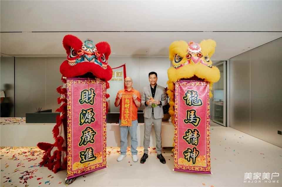 最激動(dòng)人心的點(diǎn)睛環(huán)節(jié),由公司總經(jīng)理林永先生、總經(jīng)理譚永漢先生共同執(zhí)筆,為祥獅點(diǎn)睛。筆落“睛”來(lái),象征著“喚醒祥獅,賦予靈氣”。一點(diǎn)左眼,生意興?。欢c(diǎn)右眼,財(cái)源廣進(jìn);三點(diǎn)天靈,前程似錦!點(diǎn)睛后的祥獅煥發(fā)出勃勃生機(jī),將現(xiàn)場(chǎng)的吉祥與好運(yùn)之氣推向高潮,預(yù)示著新展廳的未來(lái)必將紅紅火火,大展宏圖。