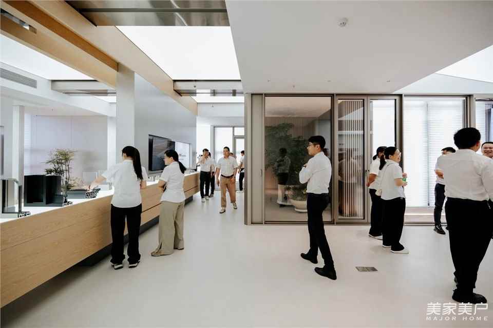 開(kāi)業(yè)典禮落成后,嘉賓們步入展廳內(nèi)部參觀。展廳以“科技與鋁應(yīng)用”為主題,薈萃前沿技術(shù)與匠心設(shè)計(jì),為大家呈現(xiàn)沉浸式體驗(yàn)與互動(dòng)空間。展廳設(shè)計(jì)現(xiàn)代、布局精妙,根據(jù)不同應(yīng)用領(lǐng)域劃分為企業(yè)文化展示區(qū)、建筑鋁型材區(qū)、高端定制區(qū)及未來(lái)概念區(qū)。每一件展品都訴說(shuō)著科技與藝術(shù)的完美融合。