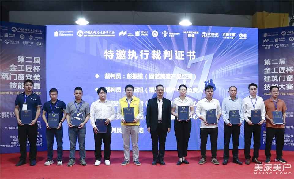 在表彰環(huán)節(jié),中國建筑金屬結(jié)構(gòu)協(xié)會檢測認證分會會長王洪濤,為成都硅寶、格屋、老賴不賴超安全門窗、固諾頒發(fā)了“優(yōu)秀合作伙伴”榮譽。廣東門業(yè)協(xié)會執(zhí)行會長徐生,對助力本次大賽的10位裁判員頒發(fā)特邀執(zhí)行裁判證書。