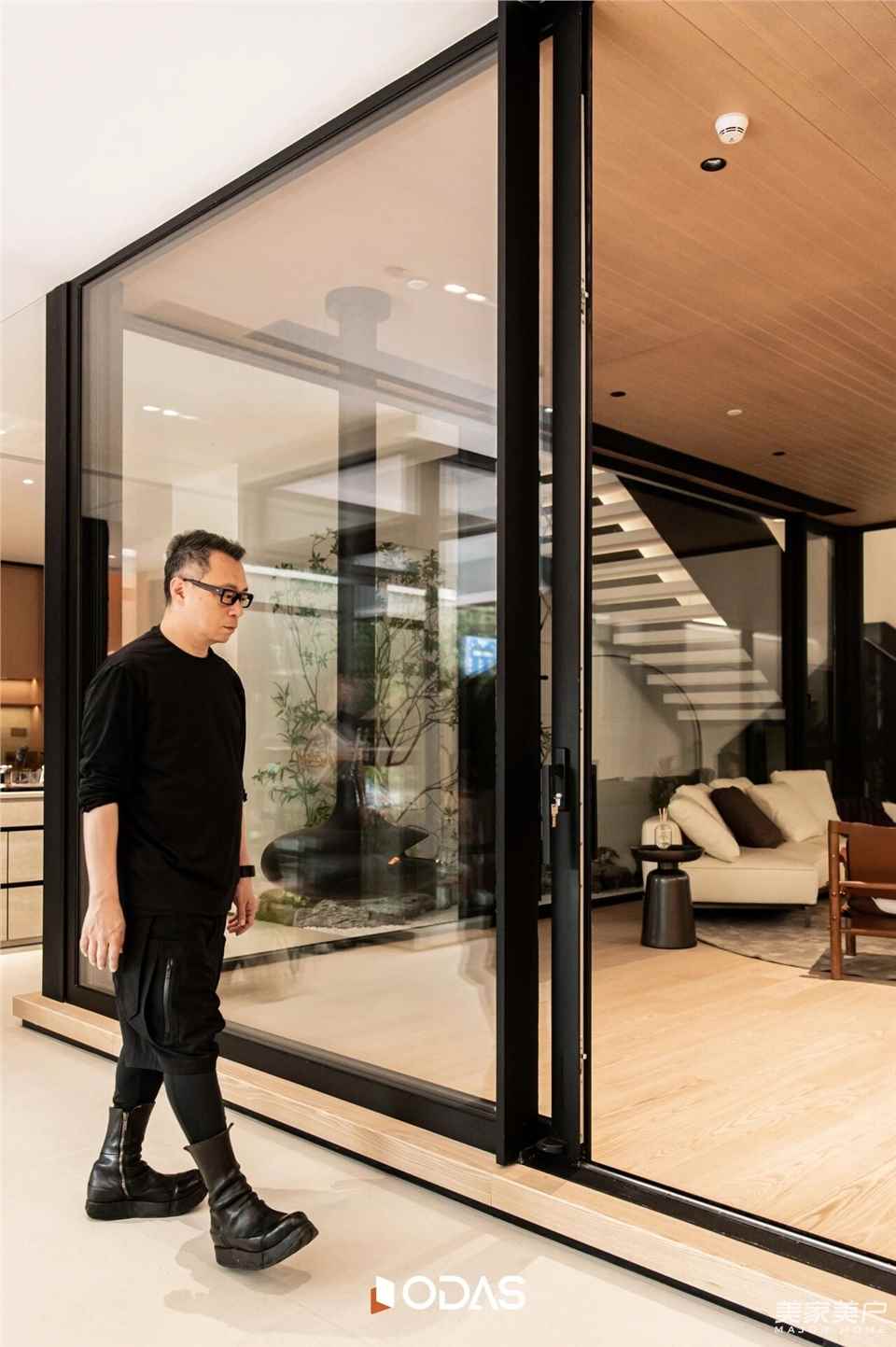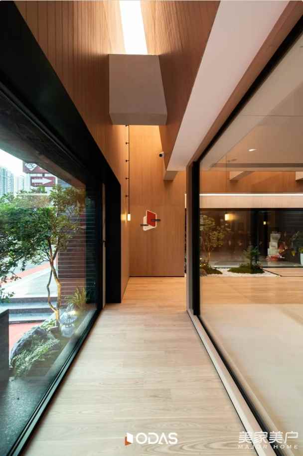 會(huì)客區(qū)金屬與天光、辦公區(qū)金屬與功能的融合,是唐忠漢老師對(duì)“從自然到精致”敘事的升華。從一層的木石峽谷到二層的金屬閣樓,我們不僅展示門窗應(yīng)用場(chǎng)景,更傳遞“讓自然與現(xiàn)代生活共生”的理念——好門窗,能融入自然,適配現(xiàn)代,是連接生活與美好的橋梁。