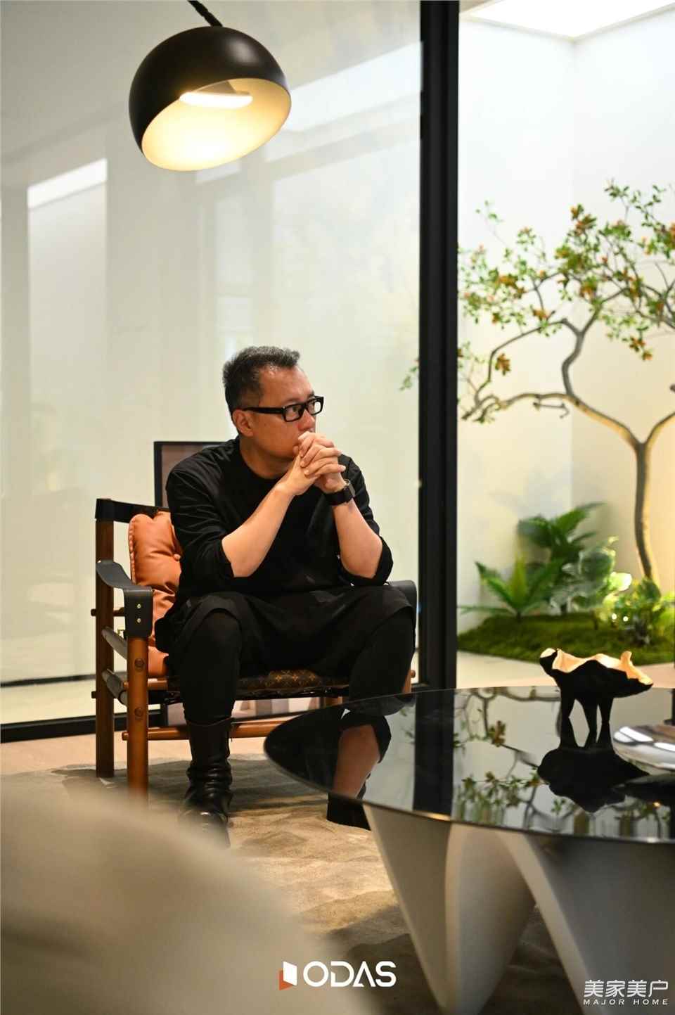 更為精妙的是,透過(guò)會(huì)客區(qū)的大玻璃向下俯瞰,能清晰瞧見(jiàn)一層峽谷的綠植與光影。上下兩層雖有著不同的高度與質(zhì)感,卻憑借天光與挑空設(shè)計(jì)緊密相連,讓自然與現(xiàn)代的融合感在此刻達(dá)到極致。