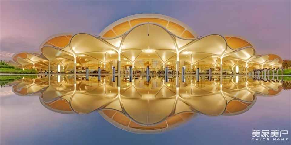 在建筑造型上,白云機(jī)場(chǎng)T3航站樓以“花”為設(shè)計(jì)主題,融入“云山珠水”“花城”的廣州特點(diǎn),如鮮花盛放,形成“羊城花冠”的建筑意象,成為廣州城市門戶形象的地標(biāo)性建筑。