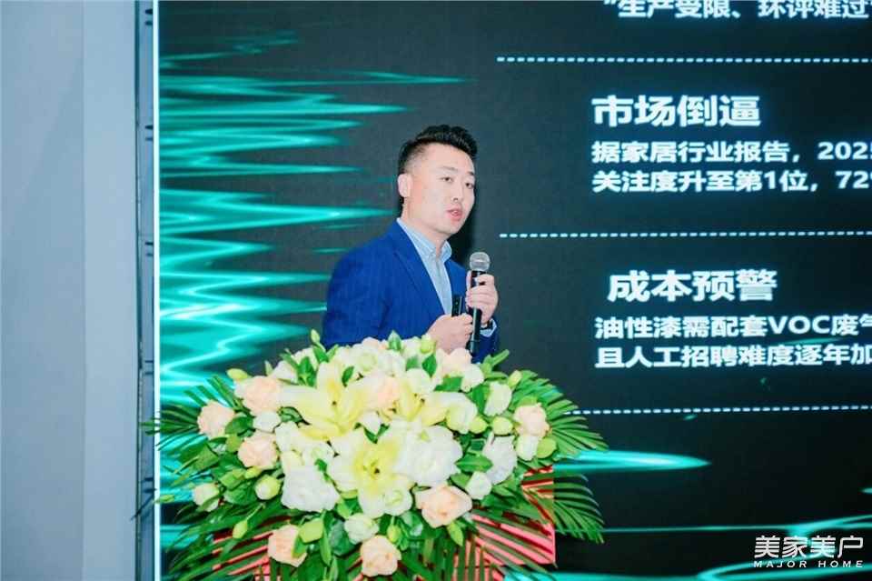 在峰會的主題分享環(huán)節(jié),君子蘭涂料集團總經(jīng)理王海軍圍繞“水漆技術(shù)如何助力重慶定制家居邁向綠色新時代”展開深度演講。他指出,在國家“雙碳”目標與消費者健康需求升級的雙重驅(qū)動下,水漆替代傳統(tǒng)油性漆已成為家居產(chǎn)業(yè)轉(zhuǎn)型的必然趨勢。君子蘭漆憑借多年技術(shù)積累,不斷為定制家居企業(yè)提供高品質(zhì)環(huán)保涂料產(chǎn)品和定制化涂裝解決方案,幫助企業(yè)提升,同時滿足多樣化的色彩裝飾需求。此外,王海軍還分享了君子蘭漆在產(chǎn)業(yè)鏈協(xié)同中的實踐經(jīng)驗,強調(diào)“單一企業(yè)的技術(shù)突破不足以推動行業(yè)變革,唯有上下游企業(yè)深度聯(lián)動,才能構(gòu)建真正的水漆定制生態(tài)圈”。