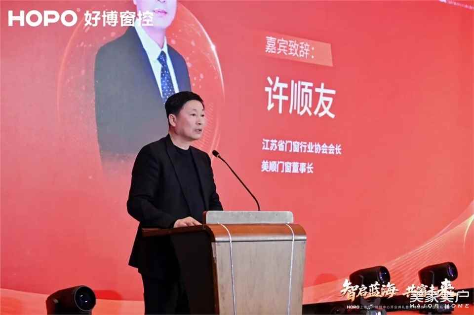 活動(dòng)在熱烈的氛圍中拉開帷幕。江蘇省門窗行業(yè)協(xié)會會長、美順門窗董事長許順友,安徽省門窗幕墻協(xié)會會長、智宬軒系統(tǒng)門窗董事長葉長清先后發(fā)表致辭。作為行業(yè)協(xié)會領(lǐng)軍者,他們始終以推動(dòng)行業(yè)高質(zhì)量發(fā)展為己任,積極聯(lián)合好博窗控等優(yōu)秀企業(yè),全力促進(jìn)產(chǎn)業(yè)鏈上下游緊密協(xié)作。在“好房子”的時(shí)代背景下,著力加大智能化與綠色環(huán)保投入,大力推動(dòng)區(qū)域合作與產(chǎn)業(yè)升級,為行業(yè)穩(wěn)健前行錨定方向。