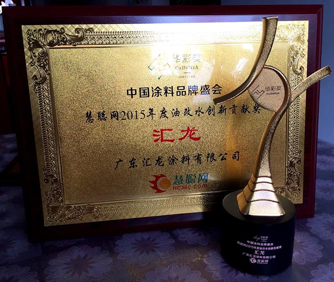 在此番角逐中,匯龍涂料以絕對票選優(yōu)勢,再獲2015年度華彩獎家具漆影響力品牌和“油改水”創(chuàng)新貢獻獎兩項殊榮。