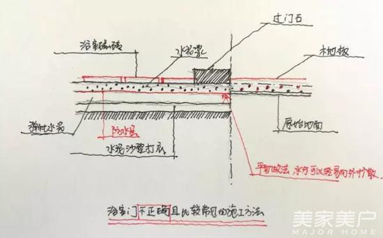自己家靠近浴室的木地板鼓起來,墻腳也有點濕濕的,找來防水師傅來看,本以為是水管漏水,后來師傅一看就說,是過門石處的防水沒做好,水氣透過過門石下漏出去了,才明白原來浴室不是鋪了大理石門檻就能防水了,若底下防水層沒做好,有過門石還是擋不住水往外跑。很多業(yè)主自己監(jiān)工,根本不懂具體施工工藝,過門石部分做好,根本看不到里頭的做法。